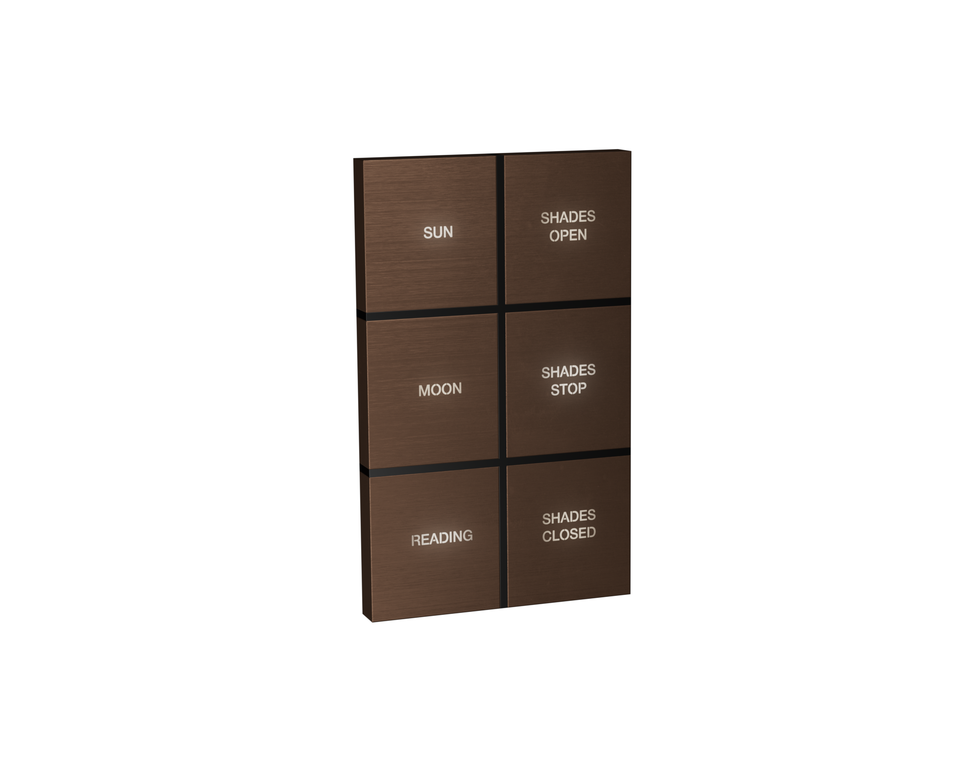 The M Series is a machined-metal, capacitive touch keypad designed for refined interiors. Configured with six programmable buttons within a standard US single-gang format, it delivers precise control of lighting, shading, and other electric loads. Each button can function as a simple ON/OFF control, a dimming interface for individual or grouped luminaires, or as a trigger for scenes and automation. The keypad is available in premium metal finishes including aluminum, brass, and bronze. A dynamic backlighting system subtly adapts intensity throughout the day and by application, ensuring optimal legibility without visual distraction. A gentle haptic response completes the interaction, delivering a quiet yet confident tactile experience.